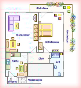 2-room non-smoking apartment, 1st floor, for 2 persons, approx. 75 sqm, 5-star classification